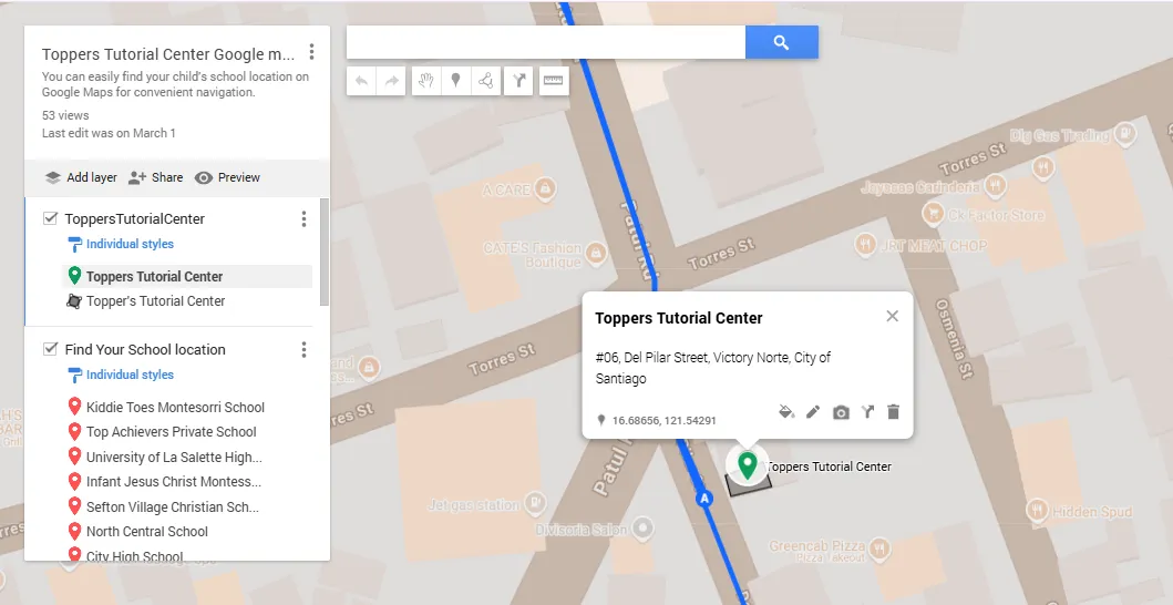 Some of the pinned locations represent the schools where our Toppers students come from.